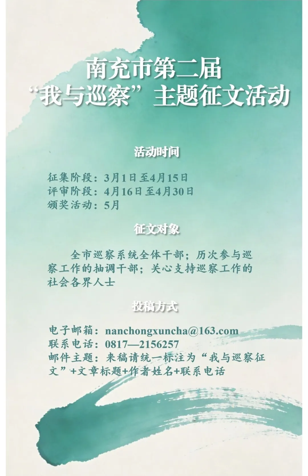 南充市第二届“我与巡察”主题征文活动开始啦