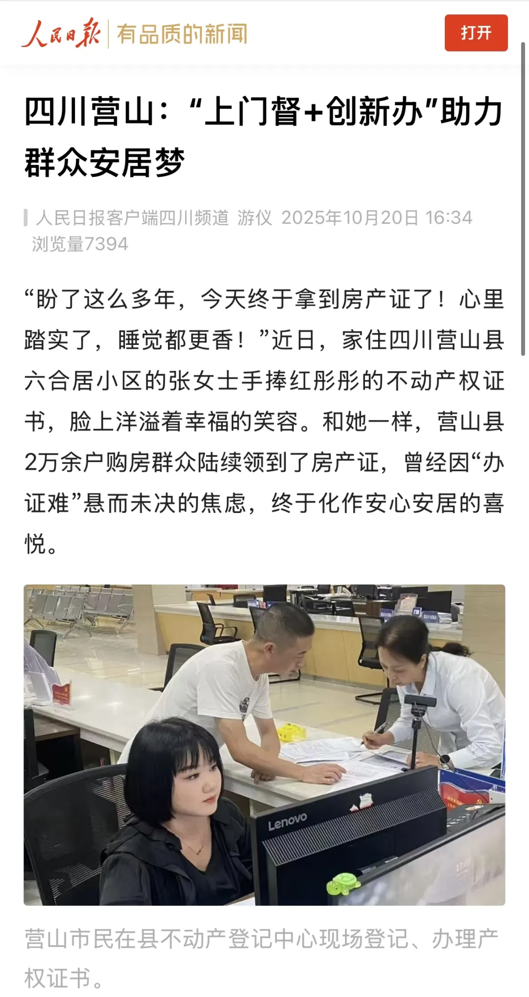 这份喜悦的背后,是营山县以“上门督+创新办”破解不动产登记难题的务实举措。