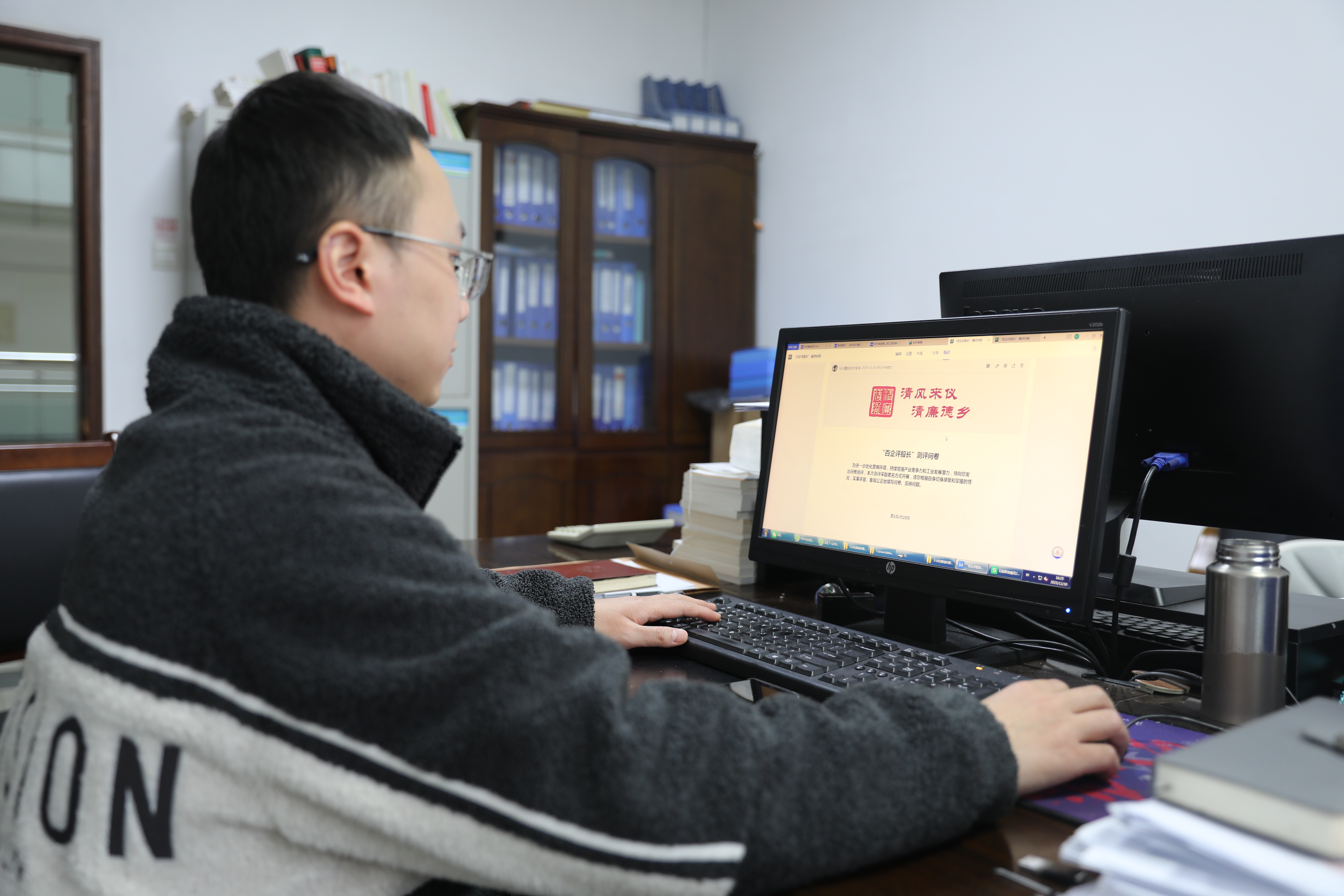 图为仪陇县纪委监委工作人员通过小程序调取“百企评股长”问卷数据。