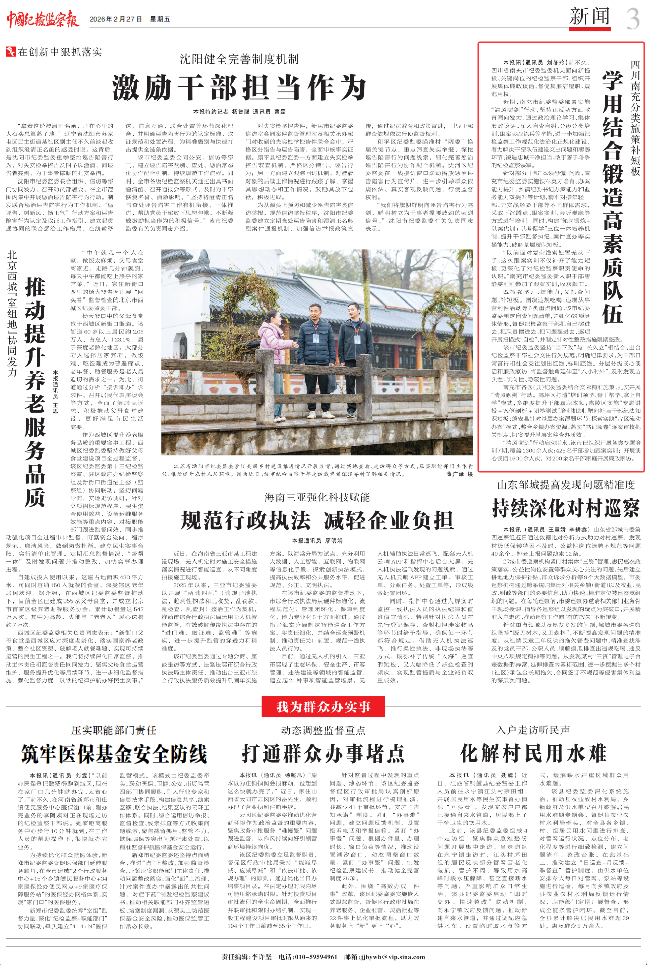针对部分干部“本领恐慌”问题,南充市纪委监委实施铁军英才培育、办案能力提升、乡镇纪委书记办案能力和业务能力双提升等计划,精准对接年轻干部、无实战经验干部等不同群体需求,采取下沉蹲点、跟案实训、旁听观摩等方式进行培训。同时,构建“轮岗锻炼+以案代训+以考促学”三位一体培养机制,提升干部监督执纪、案件查办等实操能力,破解基层履职短板。
