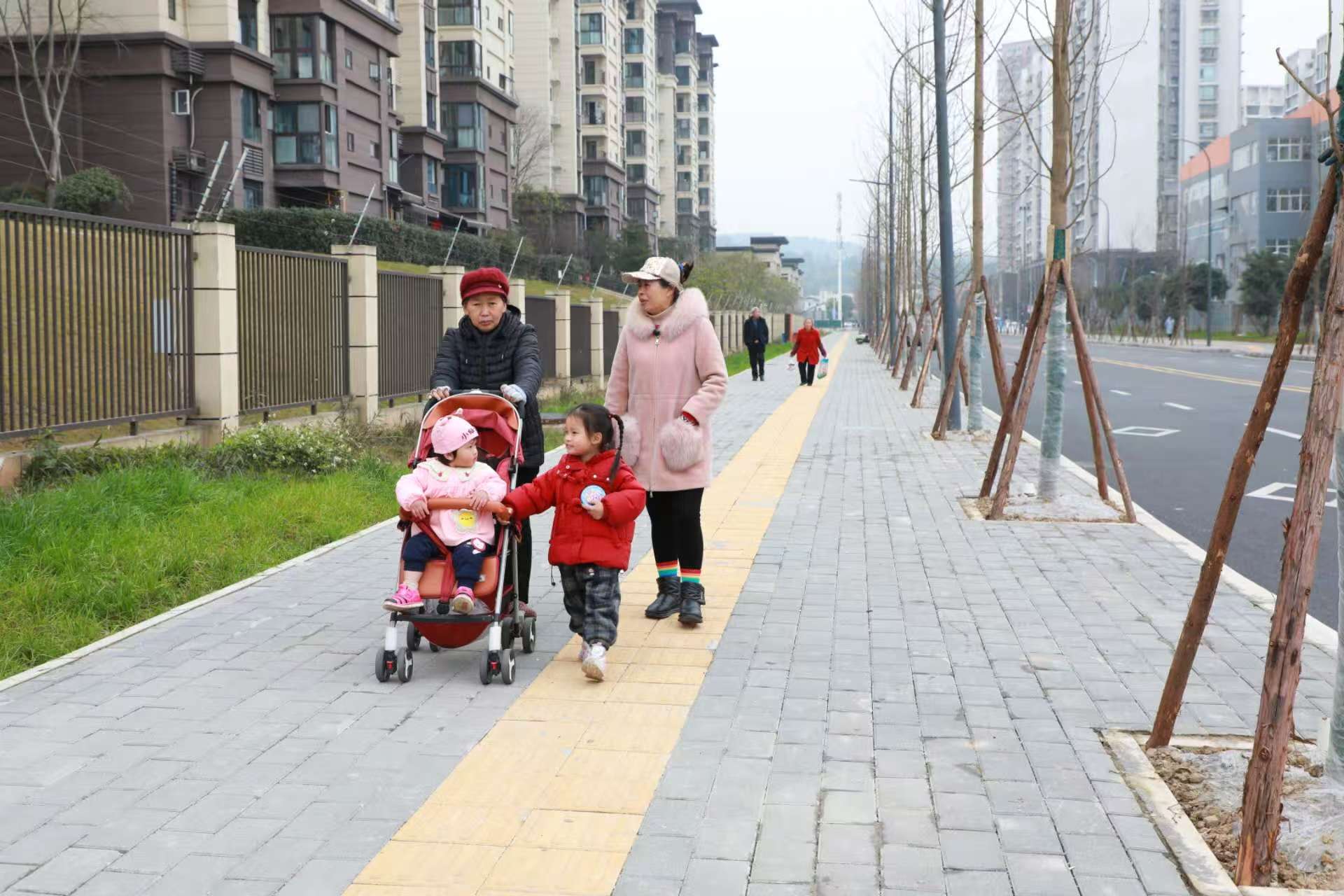 春光明媚,都京街道凤栖澜湾小区外一条崭新宽阔的柏油路泛着沉稳低调的光泽。车辆平稳驶过,老人悠然漫步于彩砖人行道,安心而温馨的场景,与数月前的景象形成了鲜明对比。