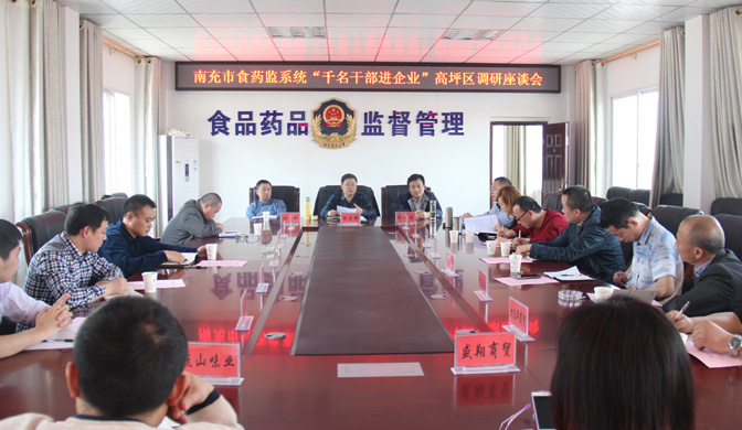南充市食药监系统“千名干部进企业”高坪区调研座谈会现场 为贯彻落实“三提升”工程,进一步加强全系......