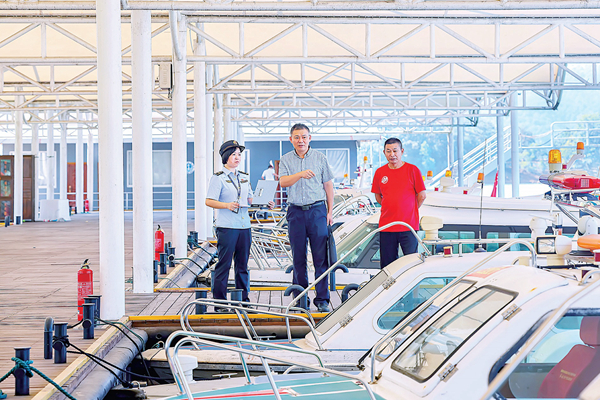 浙江省淳安县纪委监委结合千岛湖景区实际强化工作(公务)艇管理使用监督检查力度,严查借考察培训之名搞公款旅游。图为淳安县纪委监委会同交通部门对工作(公务)艇定点停放情况进行联合监督检查。毛勇锋 摄
