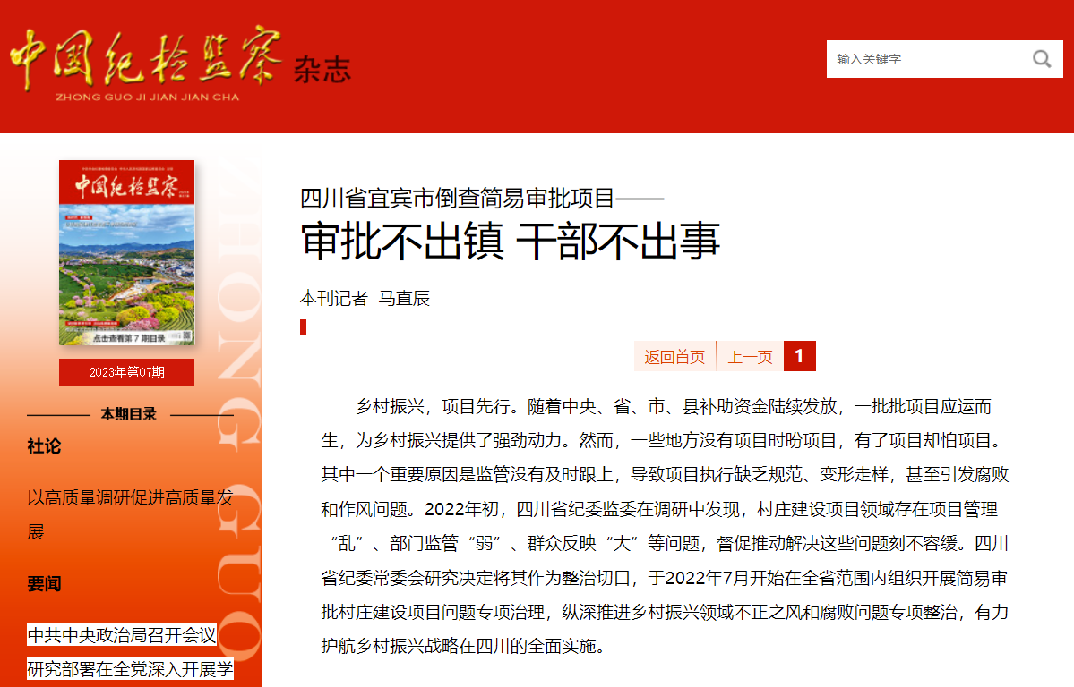从严管党治党,是我们党的鲜亮底色和独特优势。习近平总书记在二十届中央纪委二次全会上强调,把全面从严治党作为党的长期战略、永恒课题,永远吹冲锋号,把严的基调、严的措施、严的氛围长期坚持下去,把党的伟大自我革命进行到底。全会工作报告60余次提及“严”字,部署2023年主要工作处处体现从严要求,一严到底的鲜明导向更加彰显,全面从严治党永远在路上的明确信号更加强烈,解决大党独有难题的清醒和坚定更加突出。自本期起,《中国纪检监察杂志》开设“严声嘹亮”栏目,反映各地区各单位把全的要求、严的基调、治的理念落实到正风肃纪反腐、强化管党治党、加强社会治理的生动实践和具体成效。该栏目首期聚焦四川简易审批村庄建设项目问题专项治理工作。