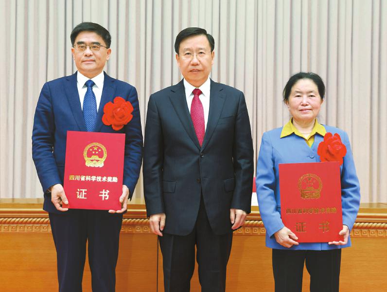 省委副书记、省长黄强主持会议。会上,宣读了省政府《关于2022年度四川省科学技术奖励的决定》和省委、省政府《关于授予王玉忠等14人第三届“四川杰出人才奖”的决定》。在热烈掌声中,王晓晖为省科学技术杰出贡献奖获得者王琪、赵金洲颁奖。随后,王晓晖、黄强等省领导为四川杰出人才奖和省科学技术奖获奖代表颁奖。获奖代表王琪、王海峰、翟婉明作交流发言。