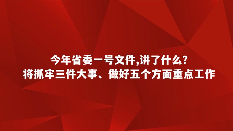 今年省委一号文件,讲了什么? 将抓牢三件大事、做好五个方面重点工作