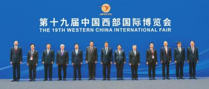 6月29日,出席第十九届中国西部国际博览会开幕式暨第十一届中国西部国际合作论坛的中外嘉宾合影。 四川日报全媒体记者 欧阳杰 摄