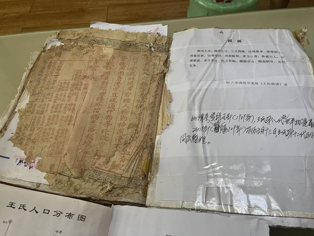 “这个就是我们王家的族谱。”王同云小心翼翼地翻开,其中一本已泛黄且边缘破损,“这个是老的那一本,晚清年间编著的,有一百多年了。新的这本则是2008年清明节重修的。”