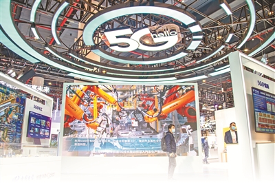 图①:湖北省武汉市中国光谷科技会展中心展出的“5G+工业互联网”成果。新华社记者 伍志尊 摄