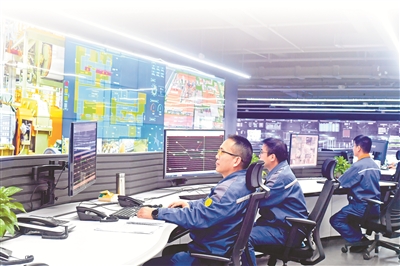 图③:福建省宝钢德盛精品不锈钢绿色产业基地内,工作人员正在通过工业互联网系统远程操作进行炼钢。刘其燚 摄