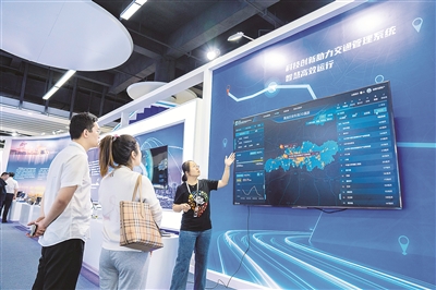 10月26日,第二届北斗规模应用国际峰会上,工作人员介绍北斗技术在交通管理系统中的应用。 新华社记者 陈思汗 摄
