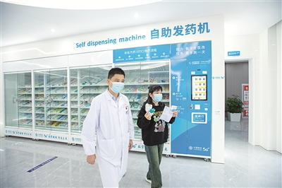 浙江金华开发区苏孟乡和悦社区卫生服务智慧健康驿站近日上线,内设有自助药柜、预检问诊一体机、智慧大屏、机器人等设施,让居民实现家门口“问诊”。图片来源:视觉中国