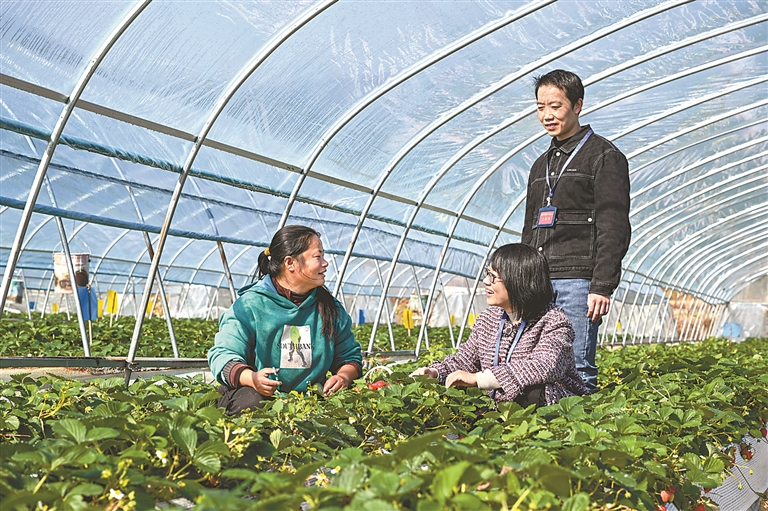 福建省三明市三元区纪委监委组织纪检监察干部下沉乡村特色产业发展一线开展专项检查,着力发现查处违纪违法问题,坚决斩断伸向惠农资金的“黑手”。图为近日,该区纪检监察干部在渔溪村草莓种植基地了解相关情况。陈盛雄 摄