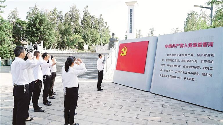 云南省楚雄彝族自治州大姚县纪委监委坚持政治铸魂强化干部队伍建设,以自我革命精神锻造政治过硬、本领高强、担当作为、敢于斗争的纪检监察铁军。图为2月18日,该县纪检监察干部到大姚县红廉文化广场开展主题党日活动。梁家礼 摄