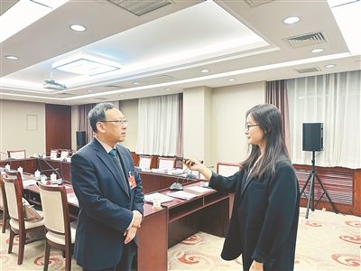 图为3月7日,全国人大代表、云冈研究院院长杭侃接受本报记者采访。冯诗雨 摄