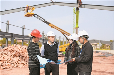 2月24日,四川省泸县纪委监委紧盯重点项目建设,组织纪检监察干部深入项目建设一线开展监督检查,全力护航复工复产。图为该县纪检监察干部在天兴镇一项目建设现场走访了解相关情况。吴威 摄