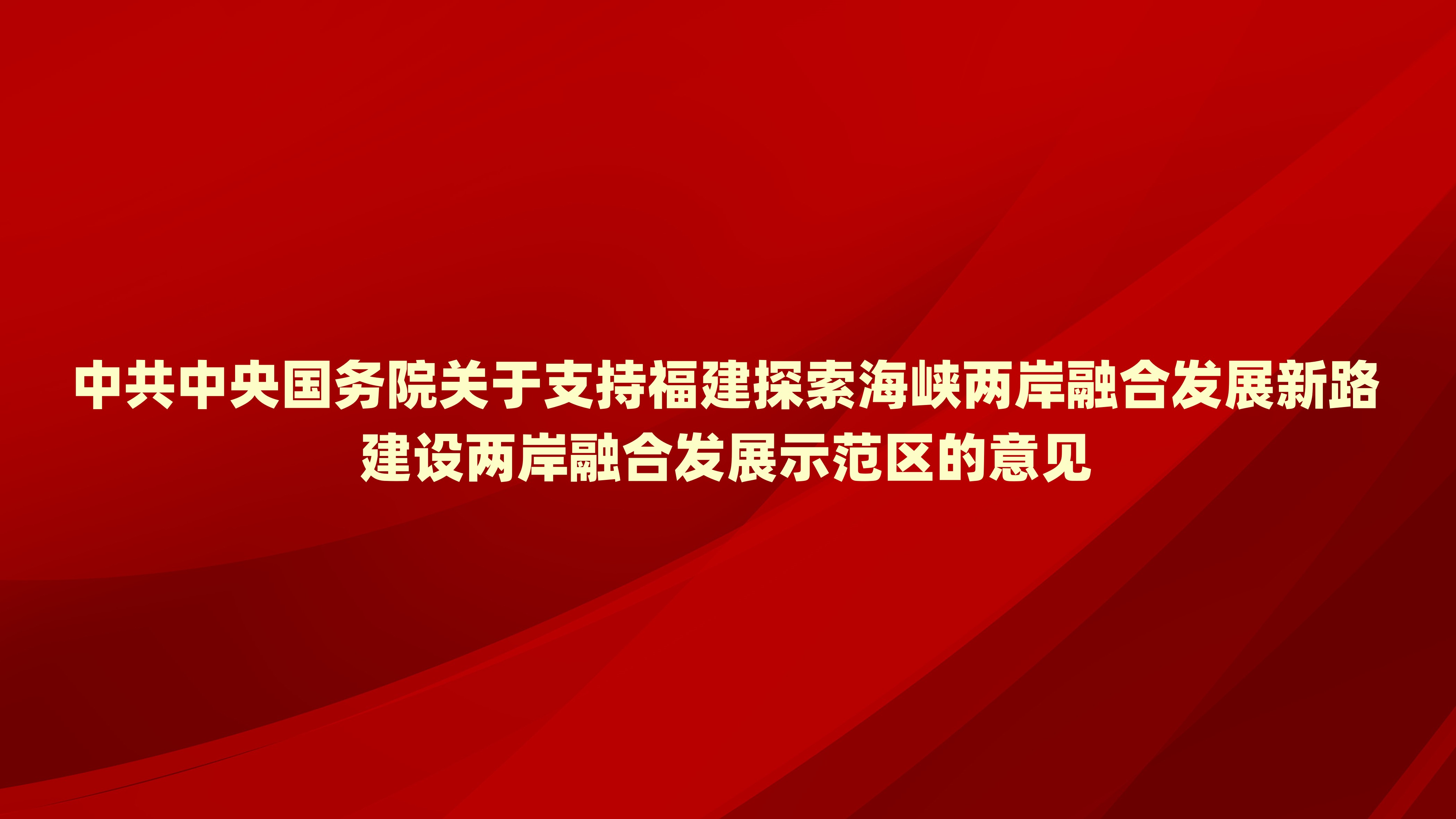 中共中央国务院关于支持福建探索海峡两岸融合发展新路 建设两岸融合发展示范区的意见