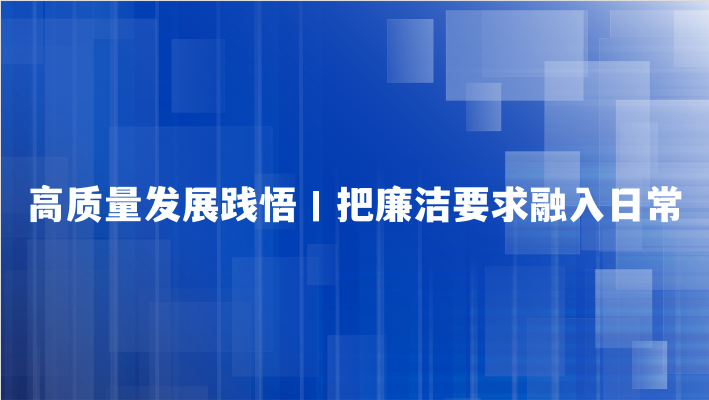 高质量发展践悟丨把廉洁要求融入日常